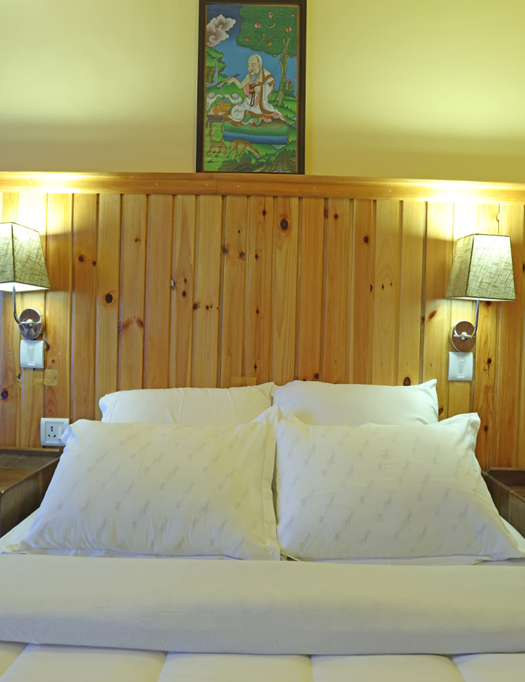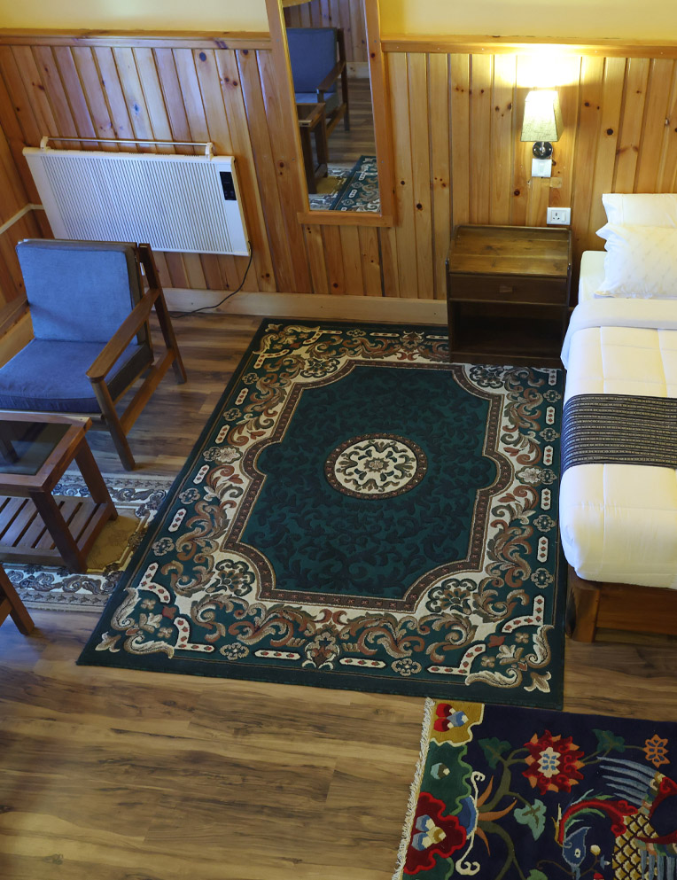 Deluxe King Room offers elegant wooden interiors and a comfortable king size bed. The open balcony presents beautiful views of the Black Mountain ranges and Trongsa Valley, creating a peaceful setting for relaxation. Ideal for couples or solo travelers seeking comfort and tranquility.
